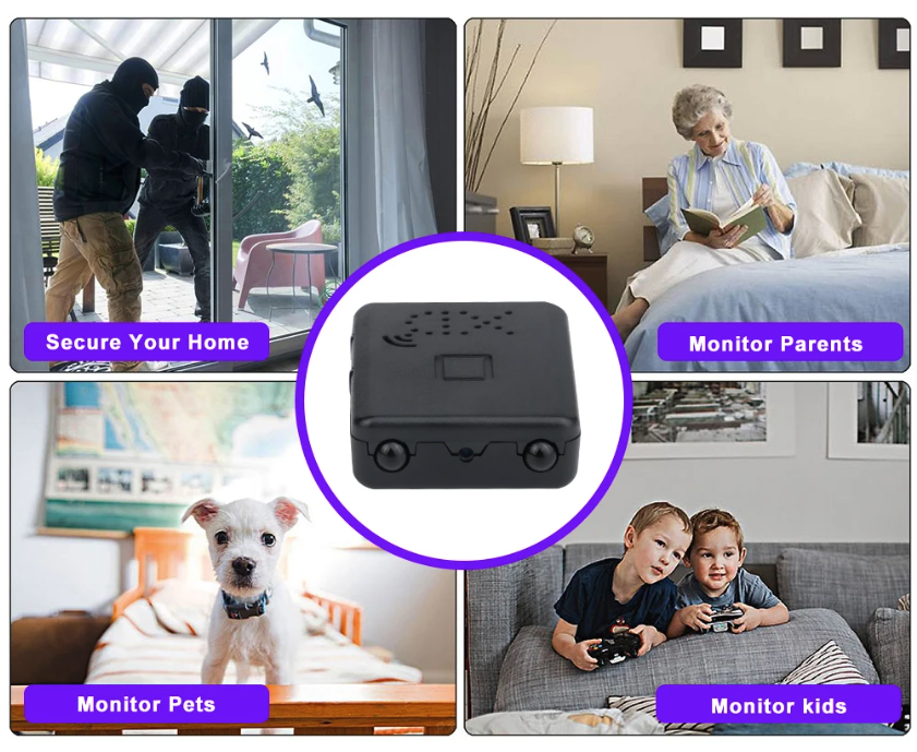 A Full HD Wi-Fi mini kamera éjjellátóval egy kicsi és feltűnésmentes kamera, amelyet bébiőrként használhatsz, hogy a mobiltelefonodon lévő alkalmazáson keresztül online videókat nézhess. A kamera éjjellátóval és mozgásérzékeléssel rendelkezik, így nem marad le egy részletről sem. Sokoldalúan felhasználható, akár otthon, akár az irodában vagy egy raktárban. Miniatűr méretének köszönhetően senki sem fogja észrevenni. Segíthet megvédeni otthonát vagy irodáját egy nem kívánt betörőtől, vagy felfedheti, hogyan bánik a bébiszitter a gyermekeivel. A Wi-Fi mini kamera lehetővé teszi, hogy egy ingyenesen letölthető alkalmazáson keresztül élő videót nézhessen iOS/Android okostelefonján. A Wi-Fi mini kamera éjjellátó funkcióval is rendelkezik, így éjszaka sem marad le semmiről. Emellett mozgásérzékelővel is rendelkezik, így egyetlen mozgás sem marad észrevétlen, ráadásul riasztást küld a mobilodra. A mini kamera ideális a tolvaj vagy más nem kívánt elem észlelésére, például az irodájában, otthonában, raktárakban vagy más területeken, ahol a mini kamerát felszereli. A kamera akár 128 GB-os memóriakártyára is képes videót rögzíteni (nem tartozék).