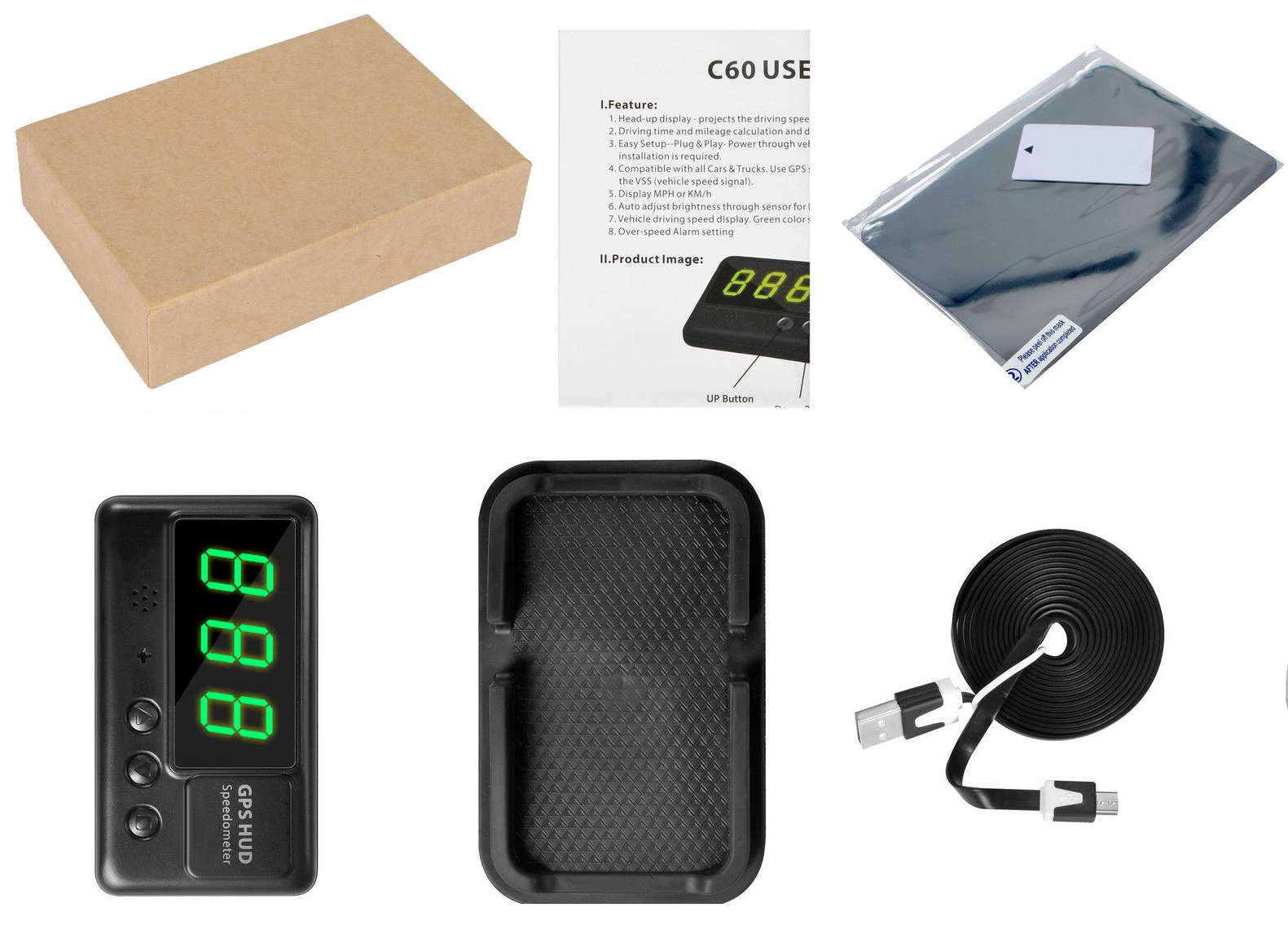 Az eszközt a sebesség mérésére használják GPS műholdak segítségével. A GPS-mérés nagyszerű, mivel általában sokkal pontosabb sebesség-információval rendelkezik, ami a legtöbb járművezető számára a legfontosabb. Ezt a sebességmérőt Head-up kijelzőként is használhatja, amely lehetővé teszi a sebesség nyomon követését a jármű szélvédőjén. Ennek az eszköznek nincs szüksége bonyolult beállításra vagy telepítésre. A GPS HUD automatikus fényerő-beállítással rendelkezik nappali és éjszakai vezetéshez.