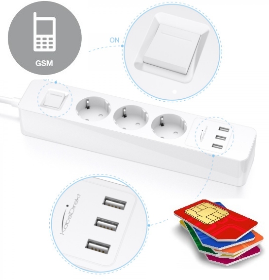 GSM lehallgató készülék 3-foglalatú hosszabbítóban 3 USB-porttal