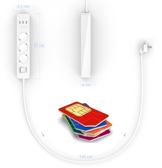 Jellemzői: Folyamatos működés lehetősége Teljesen megkülönböztethetetlen a hagyományos hosszabbítótól Korlátlan lehallgatás Állítható hangaktiválás A hosszabbító teljesen működőképes Hosszabbító 3 USB-porttal A SIM-kártyának támogatnia kell a 2G GSM hálózatot! |