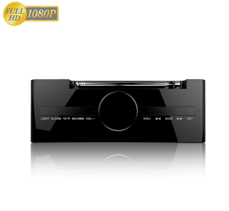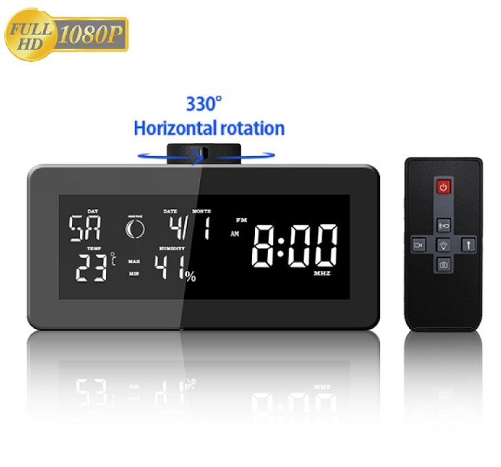 A Full HD kamerával és 330°-ban forgó lencsével ellátott kémébresztőóra az egyik legjobban eladott rejtett kamera, és a lencse bármilyen szögre történő manuális beállítására is lehetőség van. Ez egy igazi FM rádió is, így senki sem fogja észrevenni, hogy valójában egy rejtett kamera. Egyrészt ez a kémébresztőóra szép dekoráció az irodájához vagy otthonához, ugyanakkor nagyon praktikus eszköz is. A készülék ideális a lopások megelőzésére és a bizonyítékok rögzítésére. A kamera képes Full HD 1080P felbontású videók rögzítésére, mozgásérzékeléses felvételek készítésére, fényképalkotásra és hangfelvételre. Ez a rejtett, észrevétlen kamerával ellátott ébresztőóra lehetővé teszi a kamera forgatását és minden rögzítését, ami a kamera lencséje előtt történik.