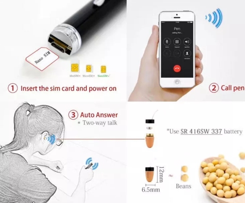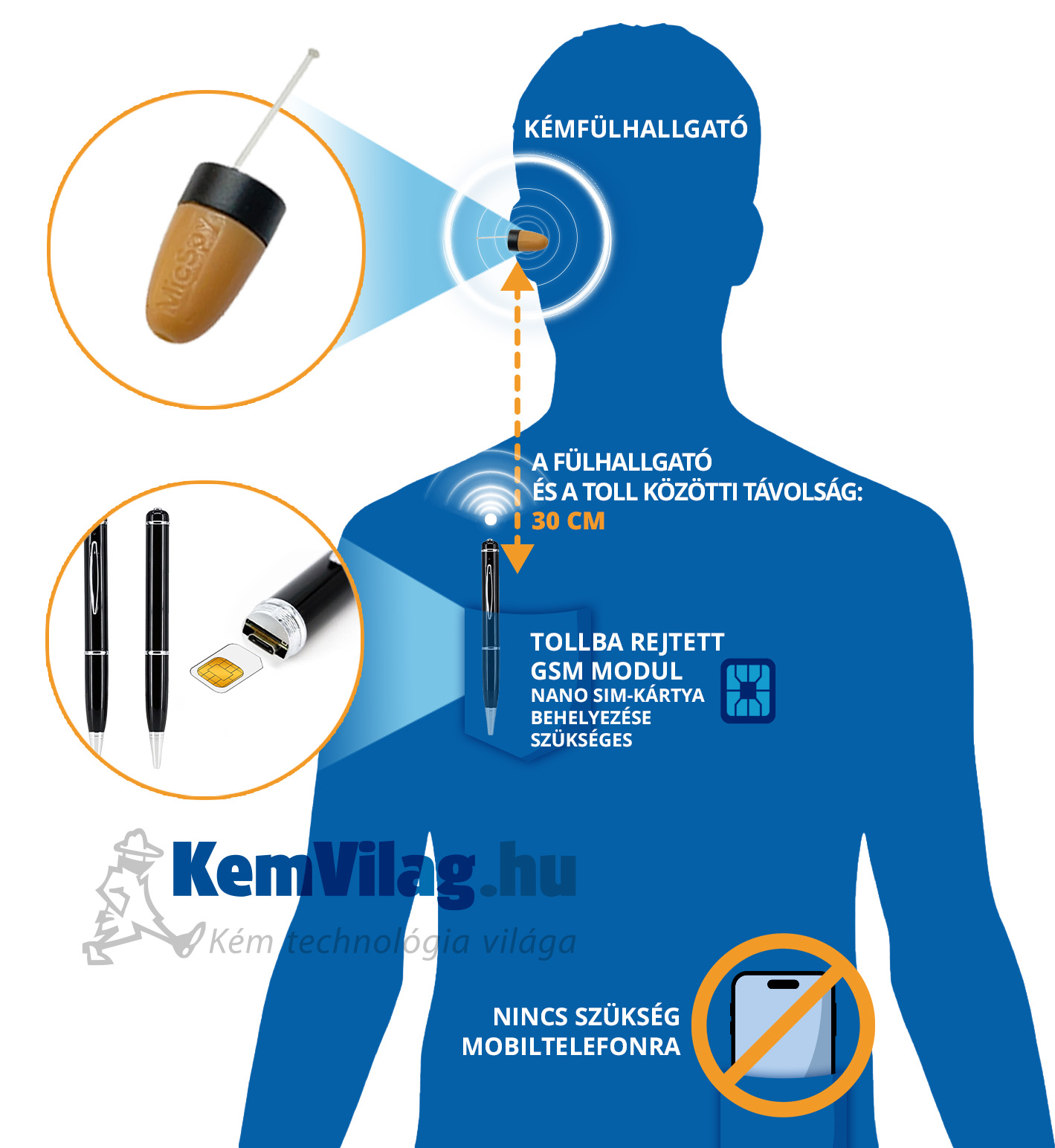 Ezzel a tollal, amelyben a GSM modul rejtett, titkos kommunikációt folytathat barátaival a telefonon anélkül, hogy azt bárki is észrevenné. Csak egy mikro fülhallgatóra van szüksége (a csomag tartalmazza), amely a tollba elrejtett GSM modullal együtt vezeték nélkül továbbítja a telefonbeszélgetést két ember között. Mivel a toll beépített rejtett mikrofonnal rendelkezik, lehetséges a kétirányú kommunikáció folytatása is. Ez az eszköz egy forradalmian új technológia, amely titkos és észrevétlen telefonos kommunikációt tesz lehetővé az eszköz felhasználója és a titkos hívó között. A készülék kiválóan alkalmas a hallgatók számára vizsgákon, üzleti találkozók és más hasonló helyzetek során. Ezenkívül ez a GSM modullal ellátott toll egy klasszikus toll, írási funkcióval is szolgál.