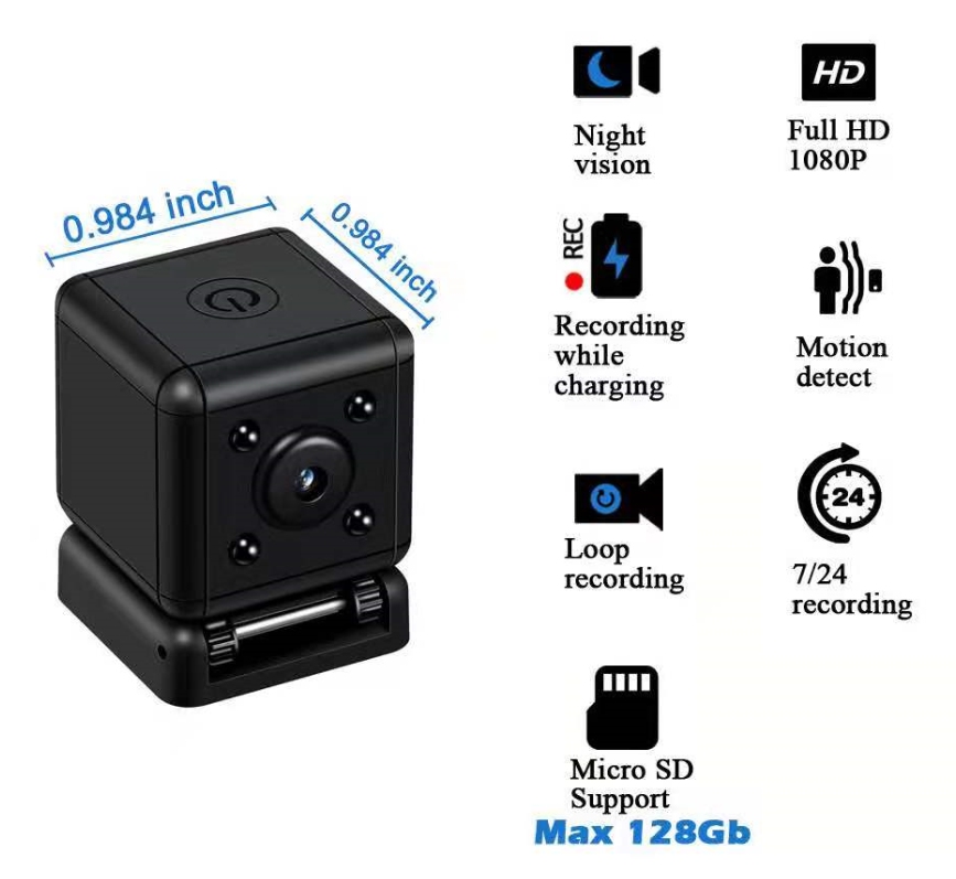 A mini DV Full HD sportkamera mozgásérzékeléssel és éjszakai látással otthoni, irodai, raktári és különböző kültéri sportágakhoz használható. A kamera kicsi, könnyen hordozható, észrevétlen, Full HD minőségben rögzít videókat, éjszakai látással és mozgásérzékeléssel rendelkezik. Ezenkívül a kamera állványon van, így beállíthatja az Önnek megfelelő pozícióba. A kamera memóriakártyára rögzít, max. 128 GB. Ha egyszerre kicsi és észrevétlen terméket szeretne, akkor ezt a mini kamerát ajánljuk.