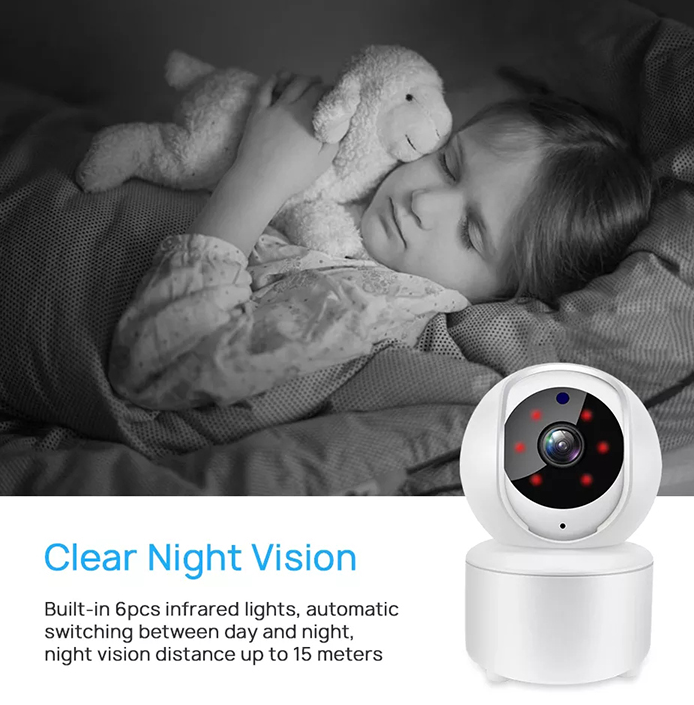 Mini Wi-Fi biztonsági kamera Innotronik ICS-PT6(4MP) ideális kamera otthona, irodája vagy raktára védelméhez. Ez a mini Wi-Fi kamera bébiszitterként is használható, hiszen kétirányú kommunikációval rendelkezik, vagyis ha gyermekünk sír, nyugtalan, a kamerából hallható hangunk azonnal megnyugtatja. A kamerát házi kedvenceihez is használhatja. Elegendő ezt a kamerát az otthoni Wi-Fi hálózathoz - routerhez párosítani, 2,4 GHz-es frekvencián, és az Android és iPhone telefonokra ingyenesen letölthető alkalmazáson keresztül megtekintheti az online képet a kamerából, bárhol is legyen a világban. A kamerából készített felvételek a memóriakártyán tárolódnak, max. 128GB támogatással (a csomag nem tartalmazza), vagy egy Cloud-alapú fiókra. A kamera mozgásérzékeléssel rendelkezik, éjszaka is nagy felbontásban rögzít minden mozgást, amiről automatikusan értesíti Önt az alkalmazásban. Ez az intelligens Wi-Fi kamera 3,6 mm-es forgatható objektívvel rendelkezik, vízszintesen 355°-ban, függőlegesen 90°-ban forgatható. A mini kamera 3MPx érzékelővel rendelkezik, és támogatja a PTZ módot. A kamera éjszakai látással is rendelkezik, így éjszaka sem marad le semmiről sem.