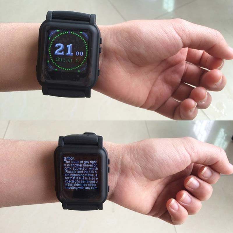 Egyedi óra, amelyet mindennapi viseletre használhat és a pontos időn meg dátumon kívül információk adatbázisaként is szolgál, amelybe számítógépen keresztül áttekinthetően elmentheti az összes szükséges információkat, és mindig a karján lesz. Az információkat közvetlenül egy teljesen színes képernyőn nézheti oldalsó gombok segítségével. A számítógépben egyszerűen rövid jegyzeteket csinálhat, USB-kábelen keresztül átmásolja azokat az órába, és utólag ezeket a szövegfájlokat az órában megtekintheti és lapozhat is benne. Vagy még jobb – az órán automatikus szövegmozgást állíthat be, így a választott idő után az írásbeli közben nem szükséges az órához nyúlni. Amennyiben szeretné, hogy a puska egy másodperc alatt órára váltson, újra nyomja meg a gombot és a puskából újra egy észrevétlen karóra lesz. Text fájlokon kívül lehetséges a karórába videókat, zenét (mp3) és képeket feljátszani. A teljes 16GB memóriával minden belefér, amire szüksége van.