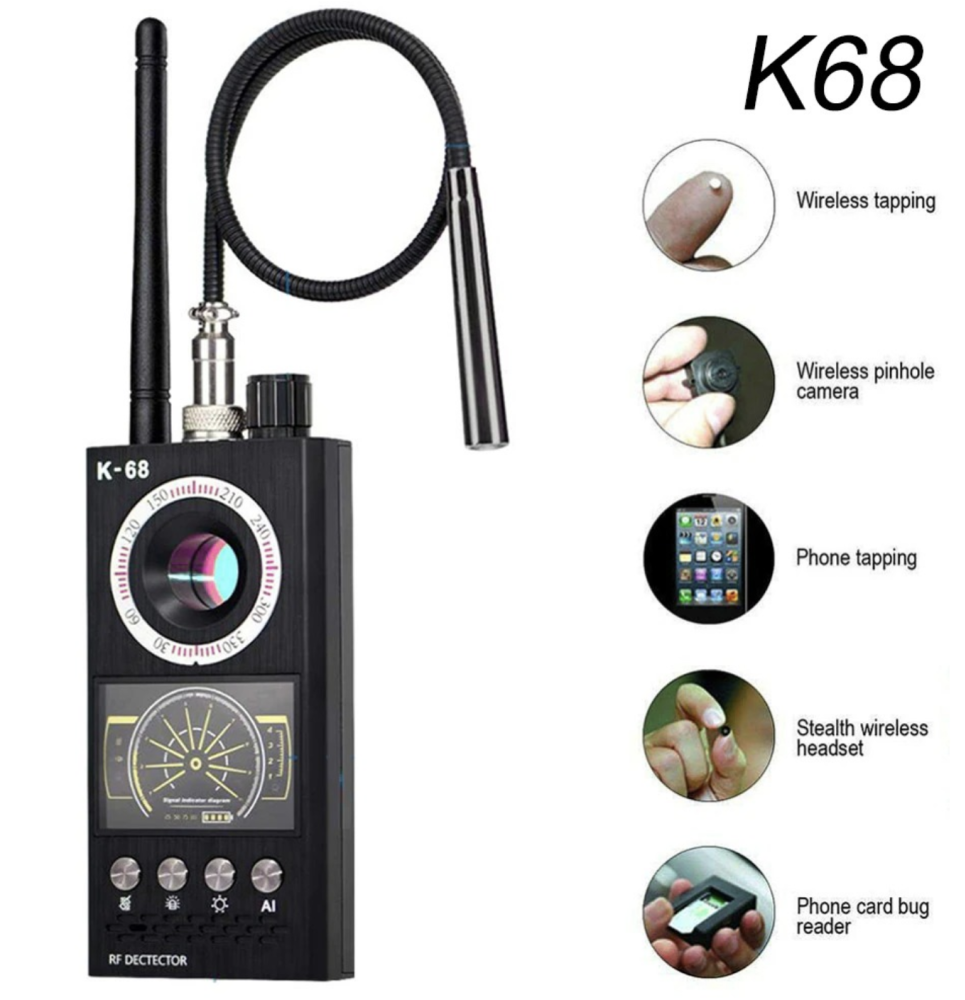 A K68 rejtett kamerák és a GSM lehallgató készülékek multifunkcionális detektora a detektorok új generációja, katonai minőségben, új, codemeter típusú LED kijelzővel, mely pontosabban tudja meghatározni a jelforrás intenzitását. A hátlapon található LED-lámpa speciális esetekben ki tudja elégíteni a világítási igényeket, a dizájn pedig intimebb. A készülék amerikai haditechnikát használ. Ez egyfajta piacorientált Anfang eszköz, amelyet kizárólag különféle lehallgató eszközökhöz, autókövetőhöz, vezeték nélküli gombkamerához, biztonsági kamerához, szerencsejáték-csalásokhoz és egyéb termékekhez fejlesztettek ki. A termék ezen a területen teljes mértékben megfelel a katonai/rendőrségi vizsgálati funkciónak. Ugyanakkor az elektromos sugárforrás méretének észlelése megóvhatja Önt és családját az elektromágneses sugárzás okozta károktól. Ez a termék vezető szerepet tölt be a digitális bevételi mód elfogadásában, amely eltér a piacon lévő termékektől. Nemcsak a felmérési frekvenciát bővíti, hanem hatékonyan megakadályozza a kaotikus jelek interferenciáját is bárhol az életben.