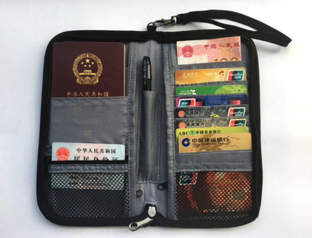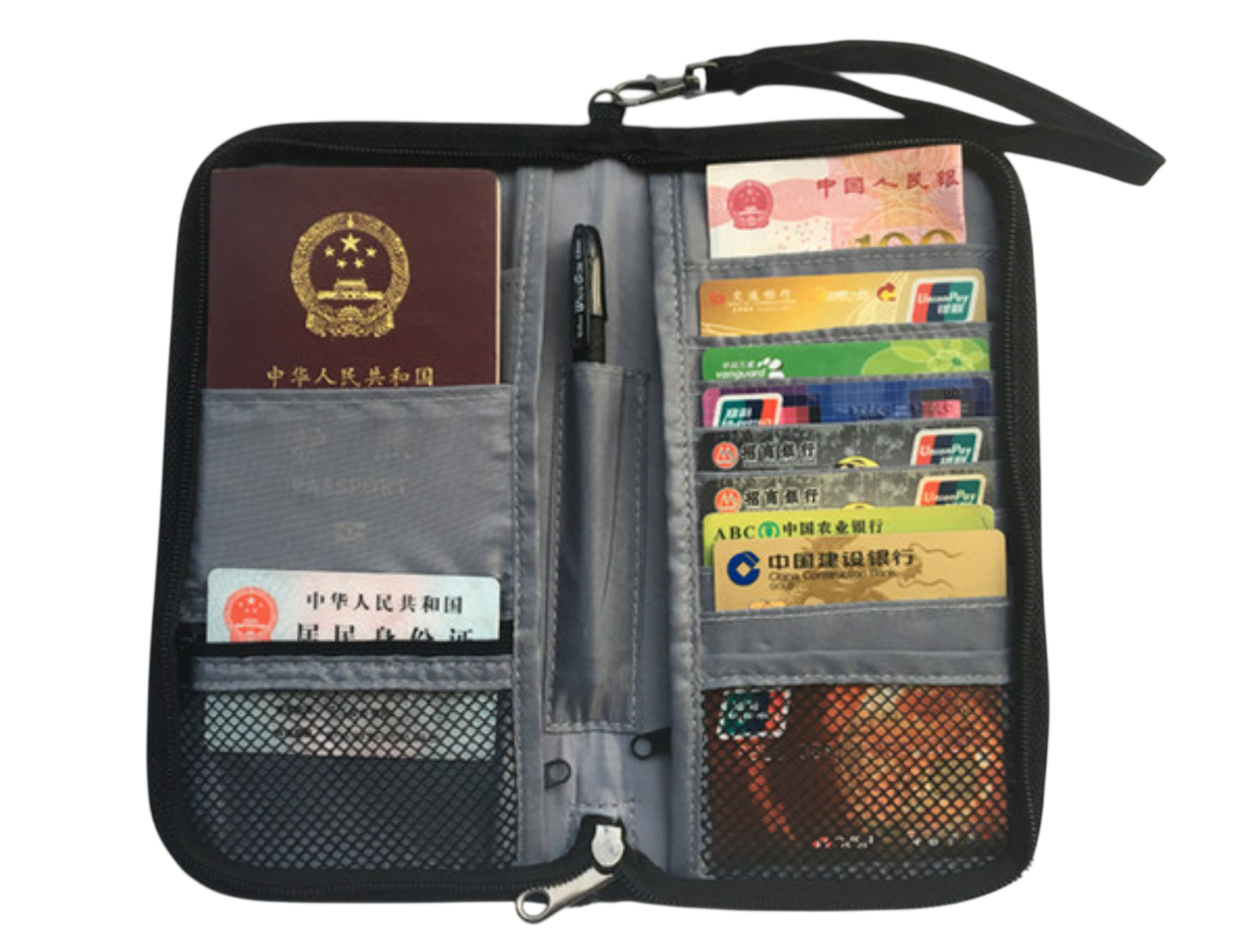 Külön tok dokumentumok, útlevél, ATM kártyák, mobiltelefon tárolására