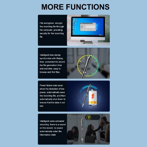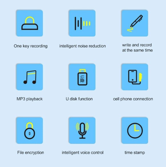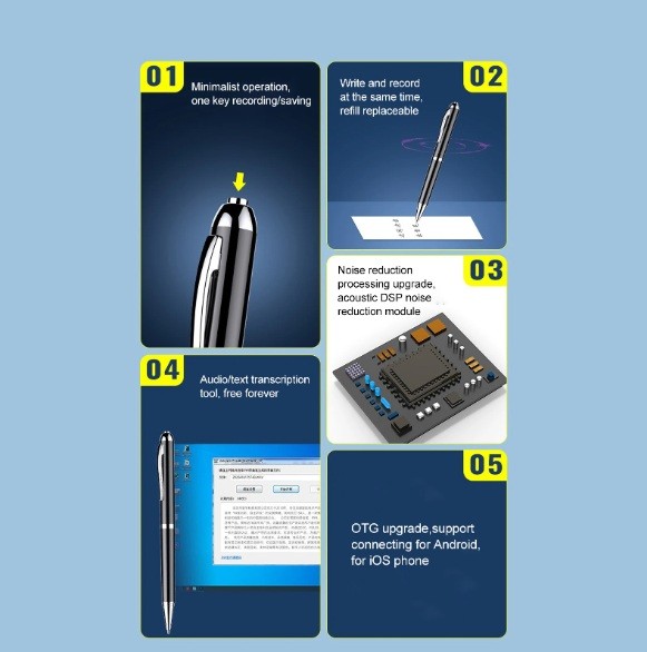 Ennek a tollnak az egyedisége a multifunkcionalitásában rejlik – felvétel közben is tud írni, így kettős rögzítést készíthet: hangfelvételt és írásos jegyzetet. A tollbetét teljesen cserélhető, így a tollat hagyományos íróeszközként is használhatja, ezzel helyet takarítva meg és mindig mindent kéznél tartva.