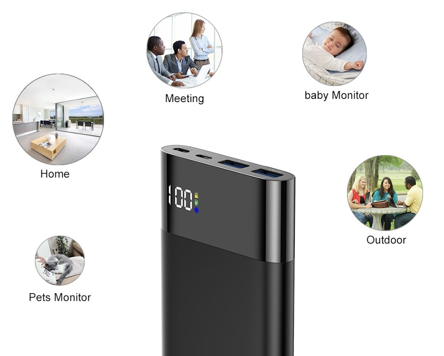 Wi-Fi 4K HD kamera powerbankben éjszakai látással és mozgásérzékeléssel