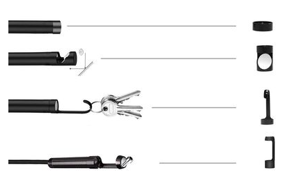 Az inskam 109 Wi-Fi endoszkópos ellenőrző kamera iPhone, iPad vagy Android telefonokhoz alkalmas. Ez az endoszkópos kamera nehezen elérhető helyeken való használatra alkalmas, mint pl. csövek, csatornák, szennyvízcsövek... A kamera HD felbontása 1280x720p. Az 5,5 mm-es kamerával ellátott endoszkópos kamera IP68-as vízálló, így nedves környezetben is használható. Azokon a helyeken, ahol nincs elég fény, 6 állítható fényerejű LED-et használ. A Wi-Fi kapcsolat az endoszkóp végén található konzolon keresztül közvetítődik az Ön készülékébe. Ezen a dokkolóegységen egy információs kijelzőt talál az akkumulátor töltöttségi szintjét jelző kijelzővel és a Wi-Fi kapcsolat állapotával. A csomag több tartozékot is tartalmaz, amelyek megkönnyítik az endoszkóppal végzett munkát – egy védőfeltétet, egy tükör rögzítést, egy mágneses rögzítést és egy kampós rögzítést. A kamera legfeljebb 5m hosszú kábellel rendelkezik.