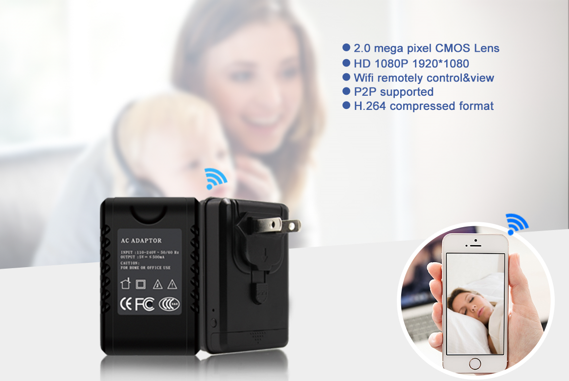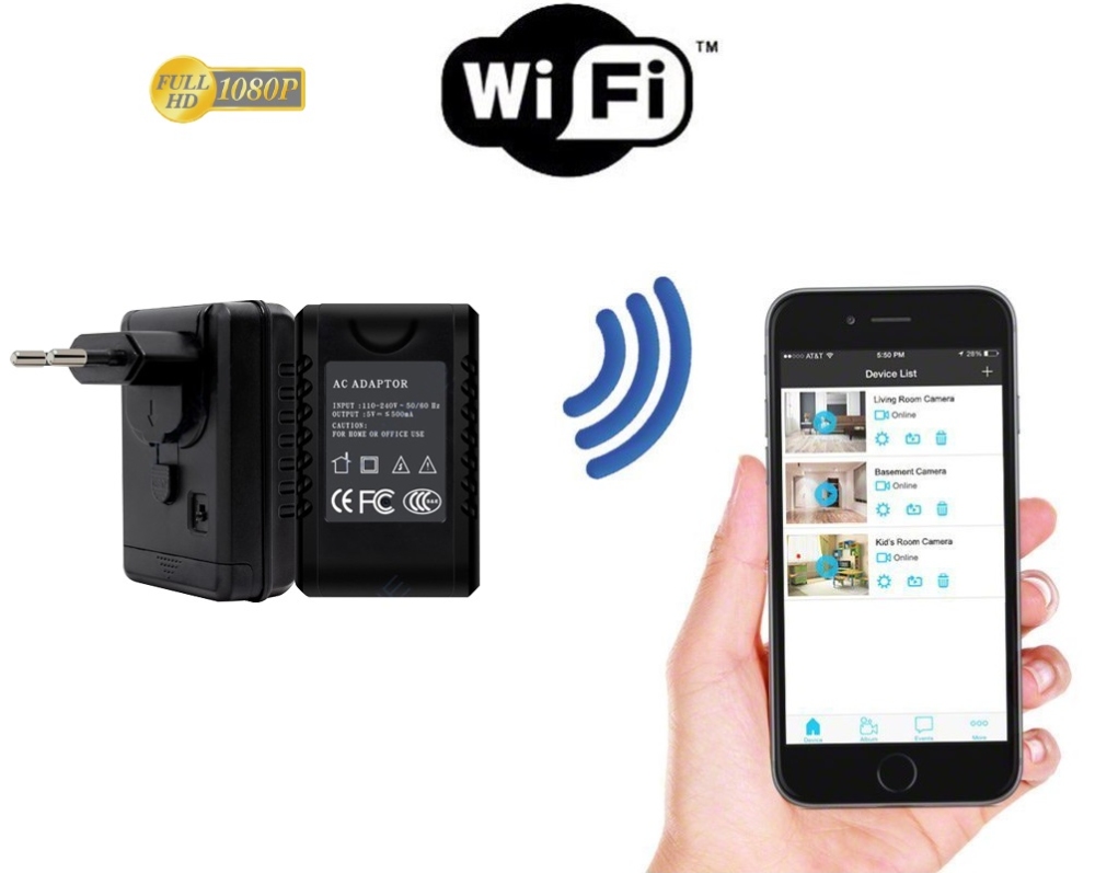 A hálózati adapterben lévő kamera Full HD 1080p felbontású, 25 kép / mp sebességgel rögzít, így a kép kiváló minőségű. A mozgásérzékeléssel és a végtelen hurok rögzítéssel kombinálva ez a rejtett kamera hosszú távú megfigyelésre is alkalmas. A kamera beépített Wi-Fi modullal rendelkezik, amely lehetővé teszi az okostelefonon az alkalmazás segítségével történő irányítást és követést (iPhone és Android támogatása). A készülék akár 120 órás felvételt képes rögzíteni micro SD-memóriakártyára (max. 128GB). Lehetséges a folyamatos rögzítés elektromos áram alatt. |