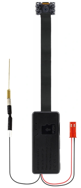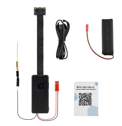 A Wi-Fi kameramodul éjszakai látással az egyik legjobb kameramodulunk, főleg a képminősége miatt. Funkciói közé tartozik a videórögzítés, a mozgásérzékelés, az éjszakai látás és a fényképezés. A kamera 1080p videófelbontással rendelkezik. A Wi-Fi videófelbontás kiváló minőségű képet biztosít, amely max. 128GB memóriakártyán is tárolható. Az erős akkumulátornak köszönhetően 3 órán keresztül képes rögzíteni, vagy csatlakoztathatja ezt a modult egy powerbankhez. A kameramodul irodák és lakások biztosítására alkalmas. Miniatűr kameramodul Wi-Fi-n keresztül mobiltelefonra vagy táblagépre történő jelátvitel lehetőségével. Annak köszönhetően, hogy a képátvitel közvetlenül Wi-Fi-n keresztül működik, nincs szükség speciális vevőkészülékre, és a képet közvetlenül az okostelefonjára is fogadhatja. A modulhoz tartozik egy ingyenes alkalmazás iPhone / Android számára. Miniatűr méreteinek köszönhetően ez a modul könnyen álcázható. A modul különféle elektronikákba is beépíthető. Okostelefonján keresztül a világ bármely pontján csatlakozhat a kameramodulhoz. A mozgásérzékeléssel egyetlen pillanatról sem marad le, és minden mozgást rögzít a rendszer. Ez a kameramodul kifinomult éjszakai látással rendelkezik, 6 IR LED diódával.